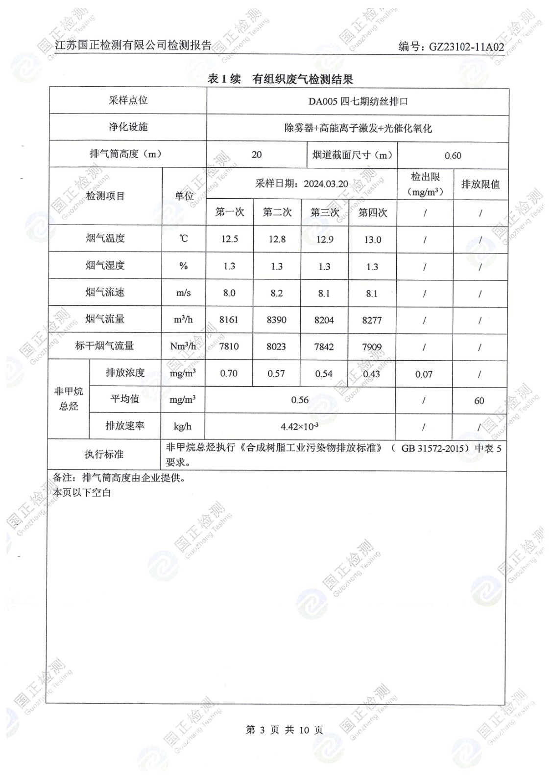 杜鐘氨綸2024年3月檢測杜鐘年排污檢測報告