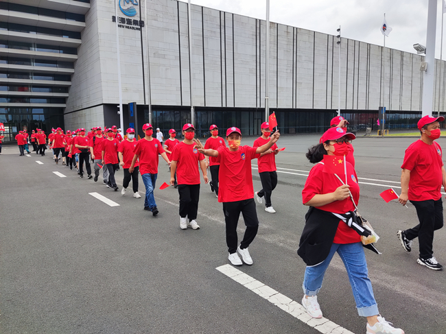 “健步行”活動在連云港工業(yè)展覽中心廣場舉辦,活動現(xiàn)場彩旗隨風(fēng)招展,人員排列有序,個人防疫完善,人員精神飽滿。行走中,參走人員體驗了“我健步、我快樂、我健康”的運動樂趣。