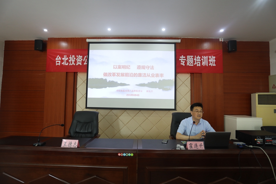 6月4日,公司黨委“學黨史、促廉潔”專題培訓班來到了海上云臺山腳下的淮鹽文化博物館。公司領導班子、各單位黨政工負責人,機關部門管理人員參加了培訓班。本次培訓特別邀請了市紀委監(jiān)委第八紀檢監(jiān)察室副主任霍連升授課。